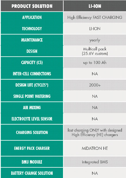 The mindful approach to new technologies, once again Demonstrate the DNA-insight attitude of MIDAC to follow The path of continuous development. Li-ion combines the State-of the-art in battery technology and electronic Integration, where all the functions are closely monitored And controlled by the BMS(Battery Management System). Suitable for fast charging application, it ensures 2000+ Cycles at 80% DoD with maintenance-free operation and can definitely be defined as option for special as option for special application where LA does not satisfy the requirements.