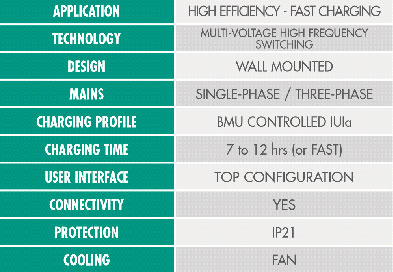 Available in single and three-phase versions, provides total Coverage of charging capacities from 100 to 1800Ah/C5, With voltages between 12 and 96V. The four new versions ST,STR,TOP and PULSE, can satisfy every application